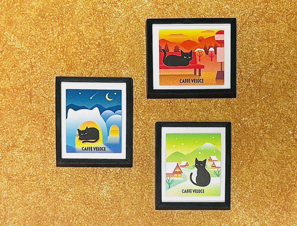 現在カフェ・ベローチェで開催されている「黒ねこ冬の満喫キャンペーン」の景品を集めております。